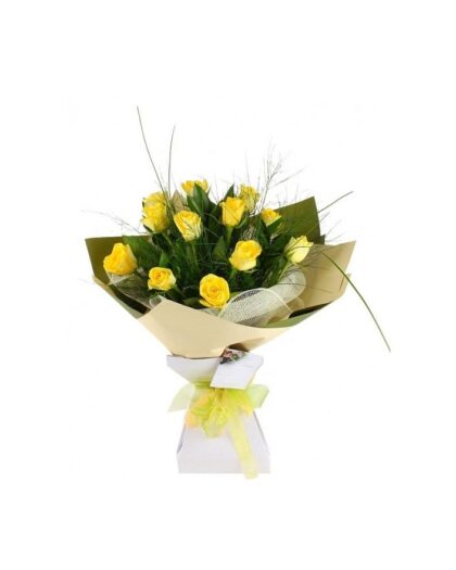 Μπουκέτο με κίτρινα τριαντάφυλλα και πρασινάδες