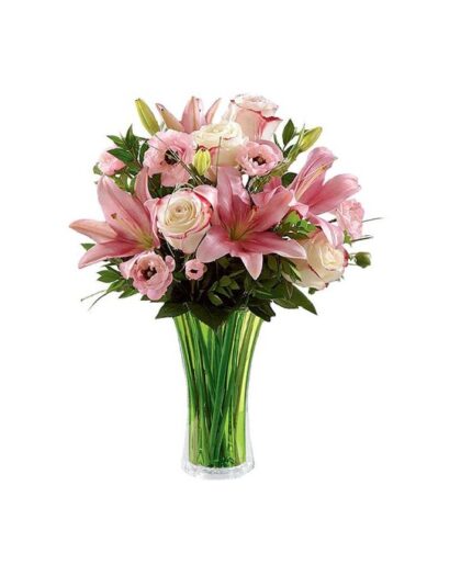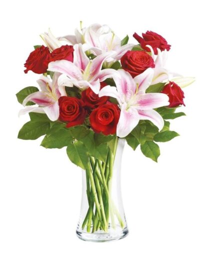 Μπουκέτο με Λίλιουμ, Τριαντάφυλλα και διάφορες πρασινάδες