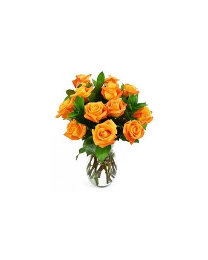Μπουκέτο με πορτοκαλί Τριαντάφυλλα και διάφορες πρασινάδες
